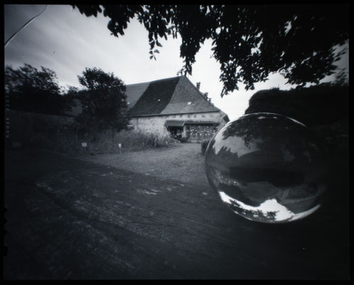 An Tag zwei gab es das erste sogenannte "Mystery-Projekt". Und was soll ich sagen: es wurde gebastelt. Chris hatte für uns ein Bastelset für eine Pinholekamera vorbereitet. In Zusammenarbeit mit einem anderen Teilnehmer, dem Jochen, der die Löcher für die Bastelarbeit mitgebracht hatte. Mit der gebastelten Kamera wurde dann natürlich auch fotografiert. Die Negative hat Chris dann am Abend in der Klosterküche entwickelt, eingescannt und "digital ausbelichtet".
