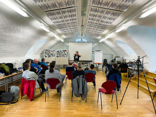 Am Montag um ca. 14:30Uhr ging es dann offiziell los. Impfgeisterchen 2021. Zusammen mit unserem Nachbarkurs "Fototransfer" wurden wir auf auf alle Corona-Schutzmaßnahmen und Verhaltensregeln für die Woche eingestimmt und durch das Kloster begrüßt. Essenszeiten und Benimmregeln waren also schnell klar.
